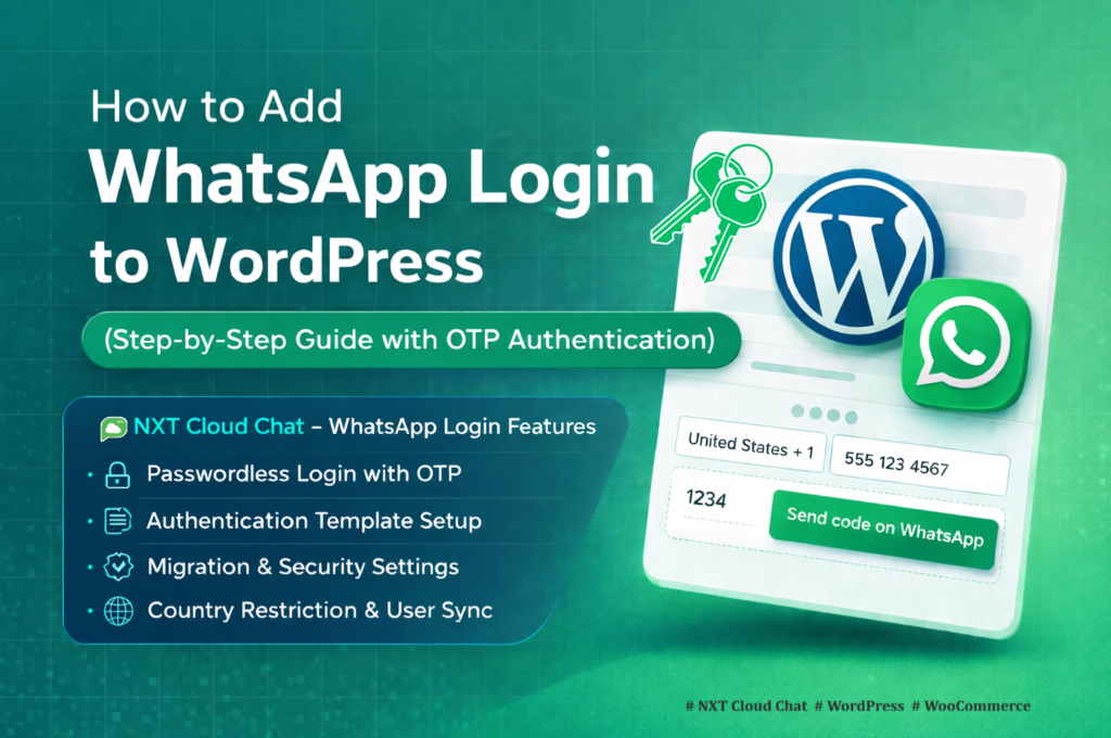 In this guide, you’ll learn how to set up WhatsApp login using NXT Cloud Chat, configure OTP templates, manage migration settings, and control how authentication works on your website.