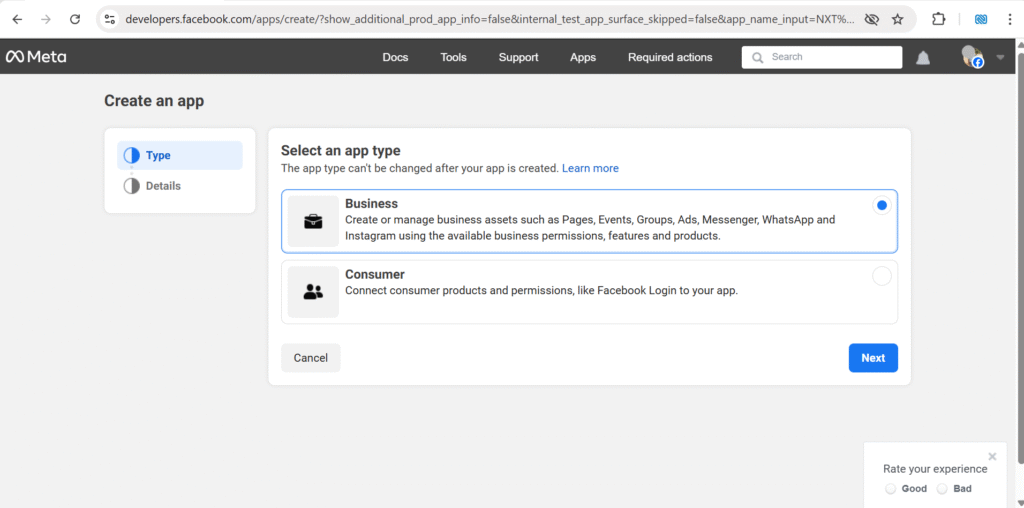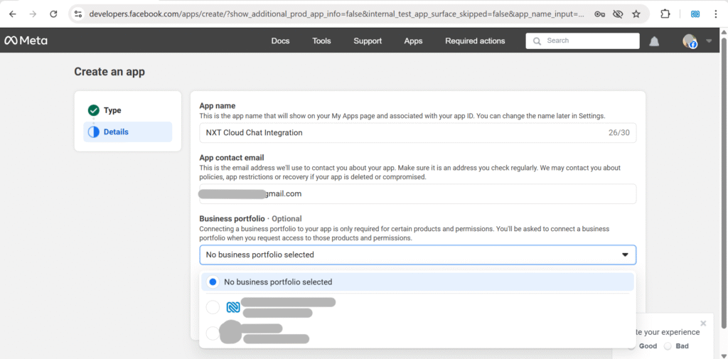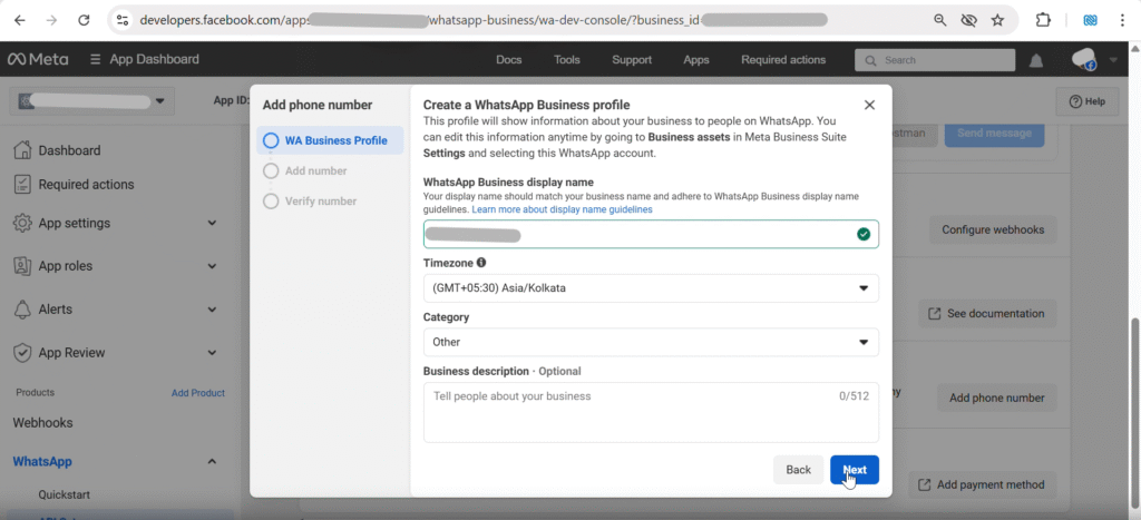 This section guides you through creating a WhatsApp app so your WordPress plugin can send messages, OTPs, and manage conversations.